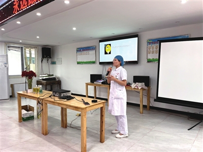 当日上午,活动在主持人甜美的问候和祝福声中拉开序幕,随后,该院伍艳护士长通过PPT展示及通俗易懂的语言详细讲解了跌倒及坠床的防护知识,帮助老人了解生活中存在引起跌倒的危险因素,主动调节日常生活习惯,提高自我保护意识。