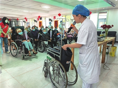 接着,该院丁海婷护士长及秦秋平护士长对常用助行器——轮椅的正确使用方法进行了详细讲解和现场示范,手把手教老人们学会调节和掌握轮椅等助行器的正确使用,及发生跌倒后的处理方法,老人们积极参与互动,气氛十分温馨。