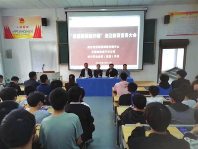 5月11日,“反电信网络诈骗”法治教育宣讲大会在咸宁职业教育(集团)学校举行。来自咸宁市反电信网络诈骗中心警官、中国电信咸宁分公司的专家通过发生在本地学校学生的电信诈骗案例剖析,对咸宁职业教育(集团)学校学生进行法治教育宣讲,受到师生们的欢迎。会后学生们积极安装下载国家反诈骗APP。 (记者傅辉 通讯员熊飞跃)