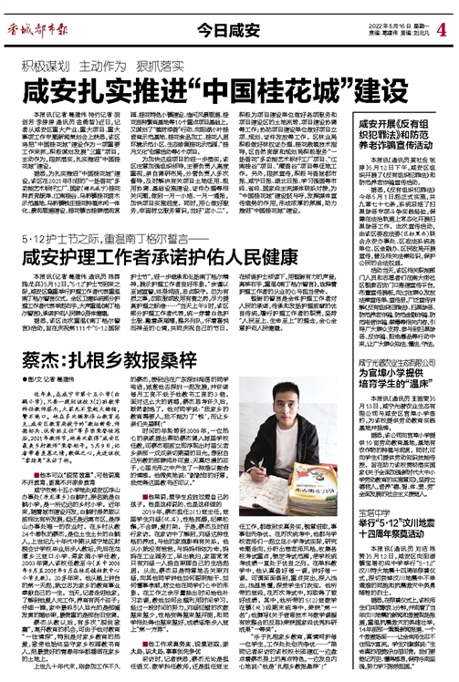 本报讯(记者 葛建伟 通讯员 陈晖 施龙兵)5月12日,“5·12”护士节到来之际,咸安区隆重举行护理工作者代表重温南丁格尔誓言仪式。全区卫健系统部分护理工作者代表举起右手,大声重温《南丁格尔誓言》,承诺护佑人民群众身体健康。