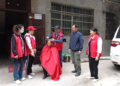 本报讯(记者周阳 通讯员汪丽君 阮玉洁)“你们想得真周到啊,我出门不方便,正为剪头发发愁呢!”5月13日,在咸安区浮山街道办事处杨下社区,一群身穿红马甲的工会志愿者走街串巷,邀请专业理发师上门为行动不便的残疾人和老人免费理发,受到居民一致好评。