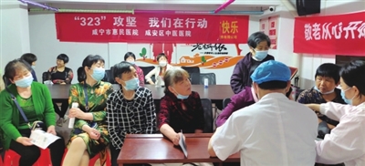 本报讯(记者 夏咸芳通讯员 杜波 李莉)5月23日,咸安区中医医院联合咸宁市孝心养老服务中心,组织康复科、心血管内科、治未病科医务人员,走进咸安长安社区清华清苑长者康乐中心开展323攻坚行动——志愿服务义诊活动,重点针对卒中、胸痛、糖尿病、风湿病等病种,为辖区群众送医送健康。
