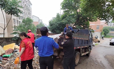 5月19日,市城管执法委综合执法四大队联合泉塘社区,对市区景泰巷暴露垃圾进行清理。