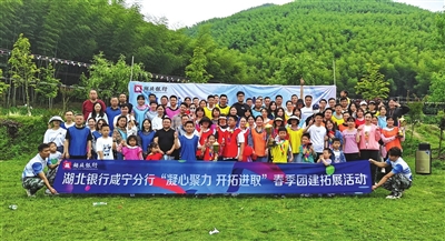 本报讯 (记者 徐浪 通讯员 乐曼) 日前,湖北银行咸宁分行组织全体干部职工,来到美丽乡村陈家沟,开展“凝心聚力 开拓进取”主题团建拓展活动。