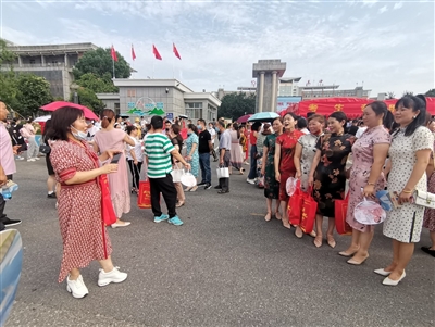 “我们的孩子都是一个班的,而且我们都来自崇阳。”举着手机拍照的程女士自豪地说。程女士是天城中学的老师,自己平时的工作太忙,孩子上高中后都是由爷爷在咸宁陪读,自己周末才能过来看一看。几家租住在一块儿,7位妈妈常常在一起交流孩子的学习,闲聊时约定一起买旗袍,特意在今天穿出来,为孩子的高考讨一个好彩头。