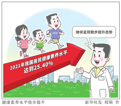 记者8日从国家卫生健康委获悉,2021年我国居民健康素养水平达到25.40%,比2020年提高2.25个百分点,继续呈现稳步提升态势。(据新华网)