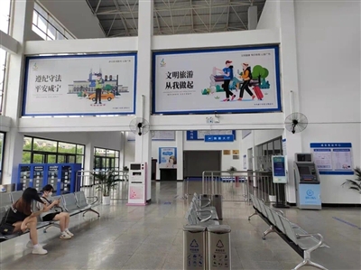 文明宣传公益广告、文明旅游宣传标语、提示信息、购票信息……在咸安客运中心,各式各样的广告文宣和导视信息随处可见,是整体环境的重要组成部分。