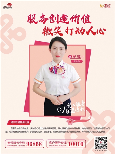 今年5月的一天早上,一位老年大妈急冲冲地走进中心厅,“你们联通怎么搞的,我每天只刷个抖音就把我手机给停掉了”。吴城见状微笑迎上来:“您先坐一下喝点热水,我马上安排给你查清楚”。通过查询用户的实际消费发现,用户使用的套餐是原来的老套餐仅有1G流量。吴城建议道:“我给您叠加上优惠流量包,以后就不会担忧流量用超而停机了”。通过耐心地沟通,大妈渐渐平静下来,吴城与该大妈攀谈起来,通过聊天,了解到大妈每天早上都要发一条抖音来记录当天的生活,这个手机抖音上记录着她老伴去世前的点点滴滴。吴城还耐心地为大妈讲解了关于抖音拍摄的技巧和制作方法,临走前大妈主动加了吴城微信,并连连夸赞:“就凭你们这种热情又用心服务的精神劲头,我会一直用联通,直到发完最后一条抖音。”