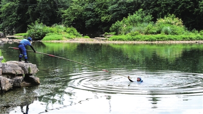 蓝天救援队员们现场演示了用法。“一般情况下,为了施救者的安全,我们不提倡直接下水去救人。如果碰到有溺水者,可以直接将救生竿抽出来救人。”柯俊辉说,救生竿的使用方法又有两种,一种是施救者站在岸边,将救生竿伸向溺水者,另一种是将救生竿用力抛到溺水者身边。