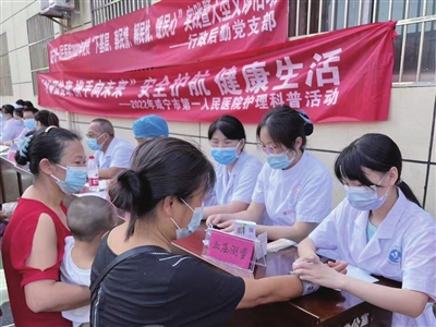 6月30日,在市第一人民医院党委书记邓启发、院长陈克俭的带领下,该院行政后勤党支部志愿者以及呼吸内科、心血管内科、神经内科、感染内科、普通外科、妇科、儿内科、眼耳鼻喉科等科室医疗专家,来到桂花镇卫生院开展大型义诊活动,这是继该院今年6月份到桂花镇开展下基层察民情解民忧暖民心·关爱留守儿童活动后,再次开展的下基层察民情解民忧暖民心实践活动,用实际行动切实解决人民群众看病就医的实际问题,把党的温暖送到基层一线,以实践活动和实际行动丰富党史学习教育成果,进一步推进“我为群众办实事”和“323”攻坚行动走深走实。