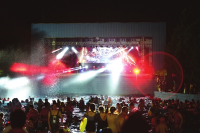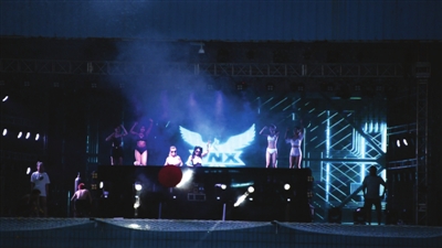 夜幕徐徐拉开,水上乐园里已经站满了等待的市民和游客。乐队成员一登台,便凭借着强大的气场、个性的台风,吸引住了全场观众。乐队以现场助唱、舞蹈、RAP等形式为现场观众带来别开生面的电音表演,极富特点的选曲以及强大的控场能力,更是令台下的观众着迷。一连串节奏感十足的电子舞曲迅速将台下游客的热情点燃,超强的音浪席卷整个水上乐园。