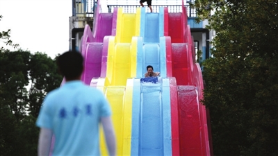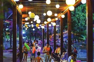 瞧!在电音流光传送之间,海啸池池水由浅入深,数百人随着光怪陆离的炫目灯光,随着震耳欲聋的电音纷纷举起双手摇滚,全都进入了如痴如醉的乐嗨状态。在身材火辣的DJ小姐姐热情助阵下,太空盆滑道上的游客勇敢地蹦个“水”迪。只见他们从数米高的平台上进入滑道,伴随着音乐声和尖叫声进入黑暗的弯道处,在未知的刺激下进入到“中心”位置;冲天回旋滑梯上的游客在激情地音乐声中,体验了一把扭转、螺旋和振动的感觉。“音乐助阵,我都来不及思考就‘飞’下来了。”游客小齐表示,这次体验很刺激、很爽。