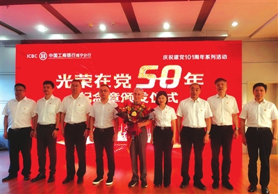 “退休不褪色、离岗不离党,我一定会继续发挥党员模范作用,为工行咸宁分行的高质量发展建言献策。”在为老党员杨祖华颁发“光荣在党50年”纪念章时,老人铿锵有力的感言让在场的工行人为之动容,全场更是响起雷鸣般的掌声。