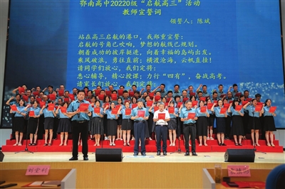 台上豪情万丈,台下立下铮铮誓言。活动现场,全体高三学生发出了自己的青春誓言“站在高三启航的港口,我郑重宣誓:争分夺秒,顽强拼搏,用勤奋作舟……”