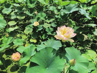 7月9日,走进石门村荷花基地,不同品种的荷花陆续开放,或粉或白或红,荷花风姿绰约,荷叶迎风摇曳,荷叶碧绿相间,淡雅香气扑鼻而来。微风拂过,荷花左右摇曳,仿佛仙子翩翩起舞。盛开的荷花与周围的青山绿水相映成趣,吸引游客驻足观赏,拍照留念。