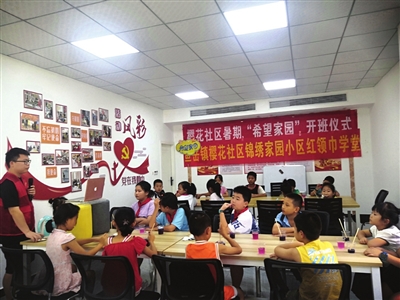“既能让孩子学习知识,又能给家长减轻负担,这个班办得太好了!”樱花社区锦绣家园小区居民朱弟焕说,他是第一次带6岁的孙子前来参加“希望家园”暑托班,没想到孩子很喜欢这里,希望第二天还要来。