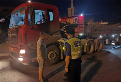 “您好,请出示您的驾驶证、行驶证、货运单据、道路运输证、从业资格证……”7月12日凌晨4时许,市区泉都大道(东外环),由市城管、交通、交警联合组成的治超专项整治专班,对过往大型货车进行检查,严厉打击超限超载、未密闭运输等违法行为。