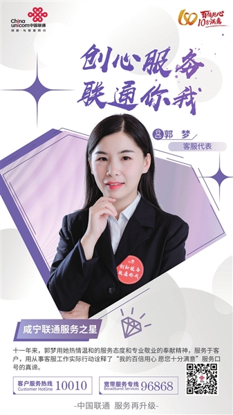 每逢节日郭梦都会收到很多用户通过微信送来的真挚祝福信息。她的微信好友大部分是她用心服务过的客户,这些客户几乎都成为她的朋友,出现问题时第一时间就会想到她。郭梦用真心服务换来了客户真诚的回报,也收获了客户对联通服务的肯定和认可。