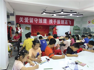 在这个党员服务中心内,托管着一群小朋友。身着红色马甲的志愿者做起“临时家长”,为小朋友讲解暑期作业,带领小朋友做手工,带着小朋友玩耍……