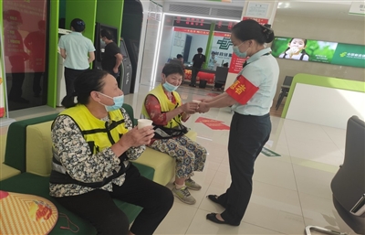 在炎热的夏季,咸安区邮政分公司利用16个邮政营业厅便利开设“清凉驿站”,为环卫工人、快递员、外卖送餐员、出租车司机等户外工作者免费提供饮水、充电、雨伞、应急药品等,给户外工作者提供“热可纳凉、渴可喝水、累可歇脚、伤可用药”的温馨服务,架起便民服务“连心桥”。