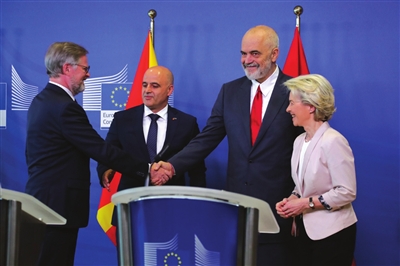 北马其顿和阿尔巴尼亚分别于2005年和2014年成为欧盟候选国,欧盟将两国入盟事宜捆绑在一起。欧盟与北马和阿尔巴尼亚有关入盟的政府间会议原定2020年年底举行,但因欧盟成员国保加利亚与北马在民族认同等问题上存有争端而被推迟。今年6月,保加利亚决定取消其对北马同欧盟举行入盟谈判的否决。北马其顿议会本月16日投票批准了旨在解决北马同保加利亚争端的提案,为开启与欧盟的入盟谈判扫清了道路。
