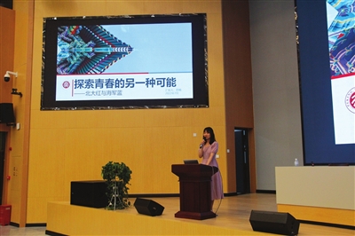 陈楠考入北大后,还有一段参军经历,并于今年保研本校。2018年,陈楠参加征兵宣传,萌发了当兵的梦想。于是她学习征兵政策,增重、锻炼,再一次向梦想发起挑战,并最终实现了自己的海军梦。梦想很美好,但现实很残酷。凌晨四点起床叠“豆腐块”、新工作的适应、严格的纪律,让她倍感压力。虽然军营生活很苦,但是陈楠迅速调整,抛开过往的成绩,投入到紧张地训练和工作。辛苦与坚持,换来了一份份荣誉,在一次次逐梦的过程中,磨练了她的意志、也丰富了阅历。 其中的经验分享为高一新生树立远大目标,注入了催化剂。