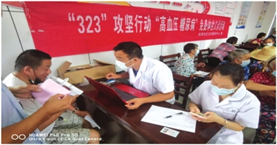 在咸安区卫健局领导下,永安社区卫生服务中心快速响应、全面部署开展“323”攻坚行动。旨在最大程度消除心脑血管病、癌症、慢性呼吸系统疾病3类重大疾病,高血压、糖尿病2种基础疾病,新生儿出生缺陷、儿童青少年近视、精神卫生3类突出公共卫生问题。
