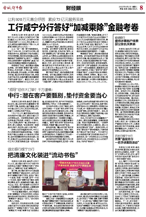工行咸宁分行答好“加减乘除”金融考卷