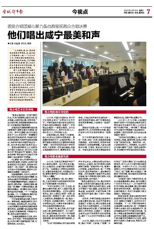 “香泉合唱团是一支很不错的队伍,队员们都接受过音乐训练,起点很高,训练时很认真,非常辛苦。”在训练间隙,陈智勇教授接受采访时,对合唱团给予高度肯定。
