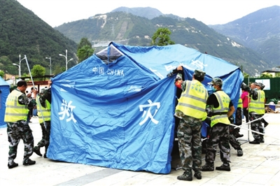 灾情牵动人心。5日20时左右,记者在磨西镇中心的贡嘎广场看到,一顶顶临时安置帐篷正在搭建,医护人员在临时医疗救助点里忙着包扎,电力抢修人员忙着抢修线路,抓紧恢复供电、通信。