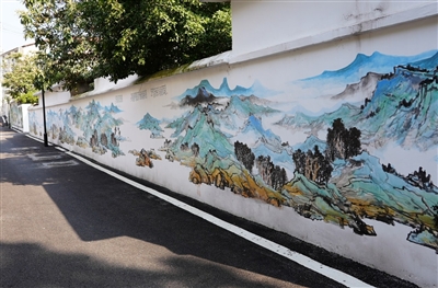 笔者在现场看到,墙面上绘制的是山水画、家风家训,不仅有“中国梦”“社会主义核心价值观”等书法作品,还有“孔融让梨”“石竹图”等精美的美术作品。一面面新增的“彩绘文化墙”让这里散发出浓浓的文化气息。目前,创作墙绘作品168幅,总长度达2000余米。这些墙绘作品分布在休干小区附近多个小区的围墙上。小区环境不仅有了质的改变,生活在这里的居民也拥有了更多美的享受,文明新风扑面而来。