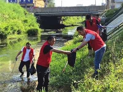 9月17日上午,市城市排水管理处近20名工作人员组成河道清洁队,拾捡市郊大屋肖河和杨下河的垃圾。