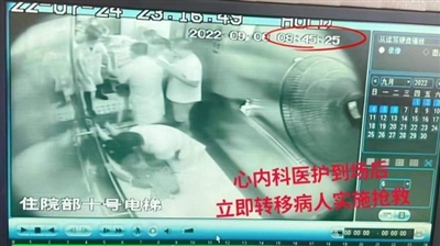 9月6日上午8点43分,患者刘某自行乘坐电梯到住院部12楼心血管内科住院。当电梯行至12楼时,刘某突然倒地。同乘电梯的恰好有该院急诊科120司机洪建,洪建见状立马上前查看病情,发现患者呼之不应、意识丧失,立即行胸外按压。电梯工作人员陈阿姨迅速通知心内科医护。