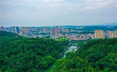 日前,记者用无人机拍摄下的温泉城区,处处绿荫,移步换景,让人赏心悦目,心旷神怡。