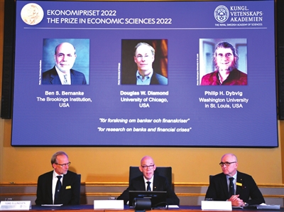 新华社电 瑞典皇家科学院10日在斯德哥尔摩宣布,将2022年诺贝尔经济学奖授予经济学家本·伯南克、道格拉斯·戴蒙德和菲利普·迪布维格,以表彰他们在银行与金融危机研究领域的突出贡献。