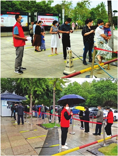 国庆期间,核酸检测工作量激增。咸安区烟草专卖局(营销部)积极响应社区号召,组织党员干部前往核酸检测点开展志愿服务,协助维持现场秩序,提醒保持安全距离,引导受检人群有序进行核酸检测,有力保障了核酸检测工作高质高效推进。