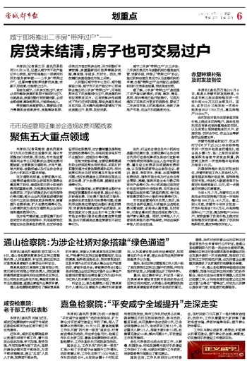 本报讯(记者黄兰芬 通讯员吴莉芳)10月14日,记者从咸宁市不动产登记中心获悉,咸宁即将推出一项便民利民的服务新举措——二手房“带押过户”。这意味着有抵押贷款的房屋,贷款不用结清,也能转让过户。