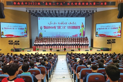 本报讯(记者 熊大平 通讯员 张宇 尤明飞)源远流长的红色经典,是历史长河中永久的瑰宝,激励着一代又一代中华儿女的豪情和斗志。10月14日晚上,鄂南高中2022级开展了“党史入我心 文化润我魂 矢志跟党走”红色诗歌朗诵比赛。