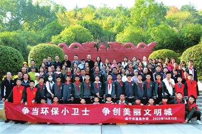 本报讯(记者 熊大平 通讯员 胡晋城)为了助力全国文明城市创建,10月15日上午,温泉中学联合家长志愿者、学生志愿者近百人,来到潜山国家森林公园,开展“争当环保小卫士,争创美丽文明城”主题活动。