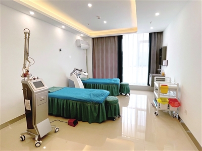 10月18日上午,记者在该院医学美容科看到,该科室宽敞明亮,安静的环境,贴心的服务,让人顿感舒心。据介绍,目前该科室拥有国内先进的强脉冲光治疗仪、ND:YAG激光(调Q激光)、二氧化碳激光、舒敏之星、红蓝光治疗仪、射频电疗仪(速雕之星)、面部皮肤注射泵等设备。