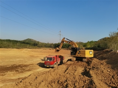 与此同时,彭碑张耕地占补平衡项目建设现场,一片繁忙景象,数台大型挖掘机、推土机不停作业,修整边坡、修建沟渠、扩容灌溉塘。因原地貌多为坑塘水面,该项目建设难度更大。目前,正加速推进相关附属设施建设,将于10月下旬完工。