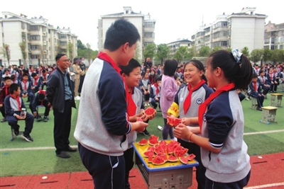 为让垃圾分类知识入脑入心,活动现场还设置了吃西瓜比赛和垃圾分类知识抢答游戏等活动环节,将垃圾分类与趣味活动相结合,通过寓教于乐的方式,充分激发学生们参与环保的热情、加深对垃圾分类的认识,轻松掌握垃圾分类的正确方法。
