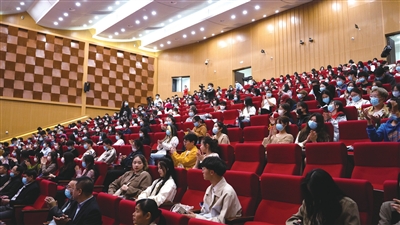 阿里巴巴集团淘宝直播垂类拓展负责人向鑫表示出对湖北科技学院学子的高度重视和信赖,他介绍道,淘宝直播将在三个方面赋能新主播:流量、现金、机构保障。在流量方面,淘宝直播将对新主播有不同层级的流量扶持,新主播每月最高能得到400万的流量,让各有特色的带货主播、专业有趣的直播内容、优质靠谱的商品走到聚光灯下,得到最大可能推广。他带来满满的干货和福利赢得了会场一阵阵掌声。