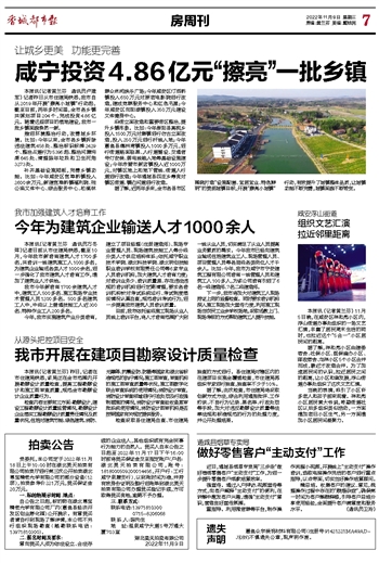 咸宁投资4.86亿元“擦亮”一批乡镇