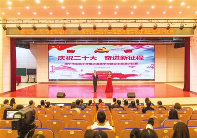 本报讯(记者夏咸芳 通讯员汪菡 秦舟)寒风初度,众志成城筑廉洁校园,一身正气,两袖清风育桃李芬芳。日前,咸宁市实验小学在该校报告厅举行“庆祝二十大 奋进新征程”主题演讲比赛,进一步推进清廉学校建设,营造风清气正育人环境,该校全校教职工进行了现场观摩。