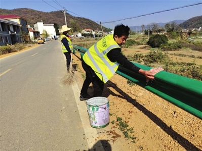 本报讯(记者 叶子 通讯员 王明涵)清扫路面碎石、清理边沟边渠、修剪杂草和树枝、冲洗公路沿线护栏、维护相关设施设备……11月9日,在咸安区风景线道路旁多处可见一群“黄马甲”们正埋头忙碌着,这是中天养护公司养护组在扮靓旅游线路,助力城市创文。