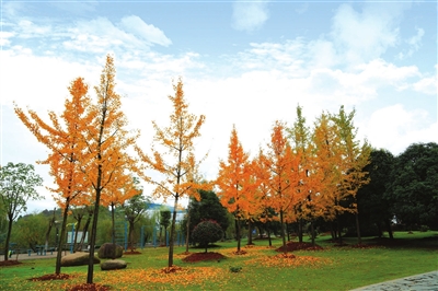 高大的法国梧桐,在阳光中轻语,落叶安然的落在草坪上。林间尽染上金黄,灿烂的阳光透过茂密的叶子,星星点点的投射在幽静的梧桐小道上,让这里的秋日如此舒爽。若你愿意,择一处林间的长椅小憩,舒心闭目,天地悠悠!