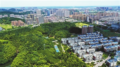 近日,无人机拍摄的温泉城区十六潭公园。坚持以绿色生态为底色,以文明城市创建为抓手,我市积极营造和谐自然、景色优美的绿色空间,不仅提升了城市颜值,还增强了市民的获得感、幸福感。 记者 袁灿/摄