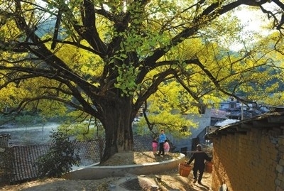 在杨芳林乡横溪村,围绕村内古树,铺设了青红砖石,修建了观景平台。不少村民将自家桌椅板凳搬到此处,在树下乘凉聊天,古树已融入村民生活。