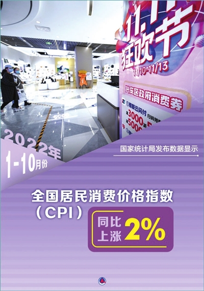尽管经济下行压力较大,但稳就业政策持续发力,就业形势保持基本平稳。10月份全国城镇调查失业率为5.5%,与上月持平。全球通胀压力高企,我国持续加大保供稳价力度,价格形势保持总体稳定。10月份全国居民消费价格指数(CPI)同比上涨2.1%,涨幅比上月回落0.7个百分点。